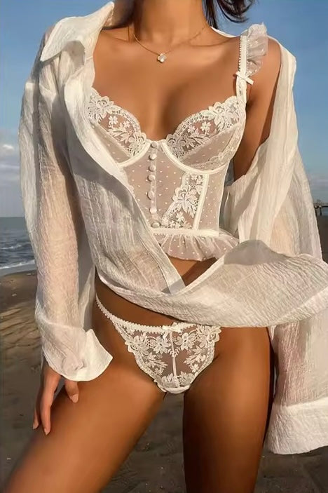 Cada conjunto de lencería o (set), incluye brasier y panty, algunos incluyen accesorios como gargantilla, guantes, medias, ligas y ligueros, para hacer de la moda intima una experiencia inolvidable transformando lo cotidiano en momentos inolvidables.