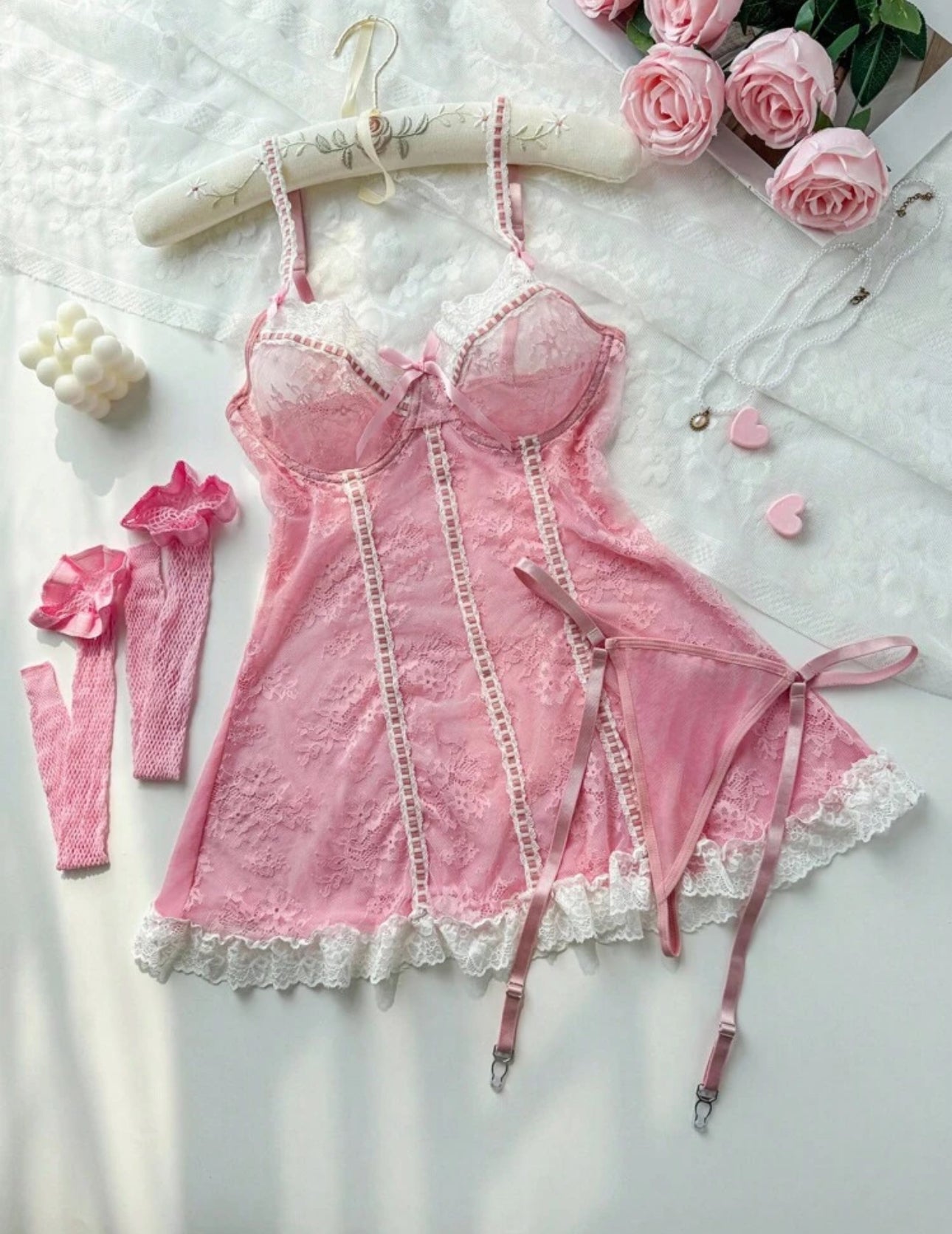 Babydoll color rosado incluye medias